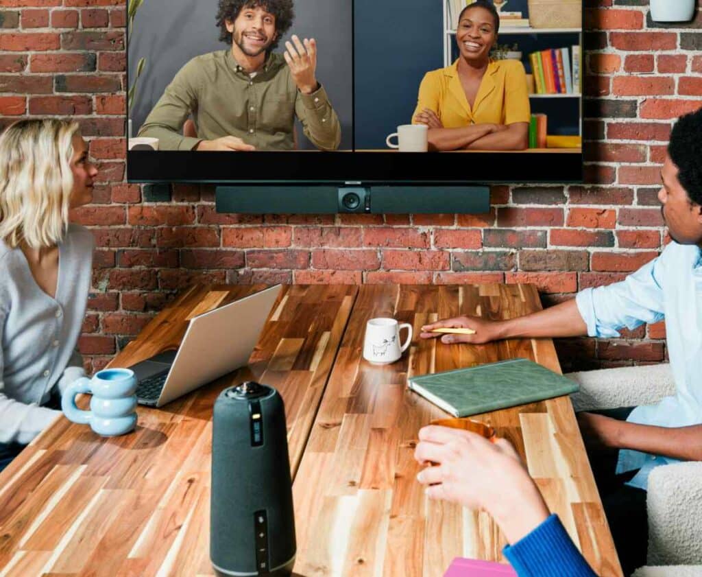 De 360-graden camera van Owl Labs zorgt ervoor dat deelnemers elkaar echt in de ogen kunnen kijken, zelfs wanneer ze op afstand deelnemen. Dit bevordert een veel natuurlijkere interactie, wat essentieel is in de huidige hybride werkomgeving.